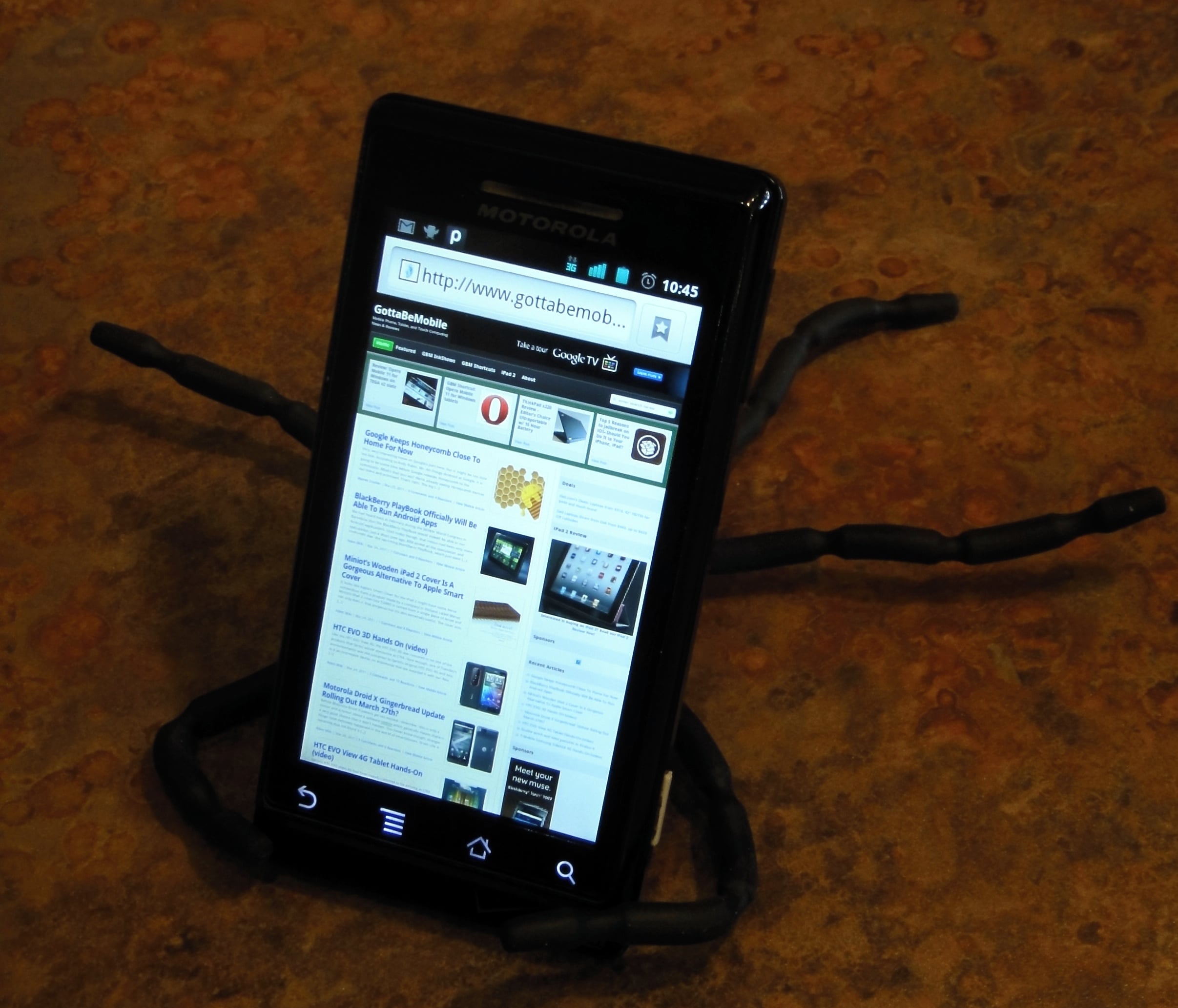 The Breffo Spiderpodium is a pretty amazing smart phone accessory which can be used to hook your phone to pretty much anything you can imagine, or to prop your phone up for watching a movie or keeping an eye on your Twitter client.