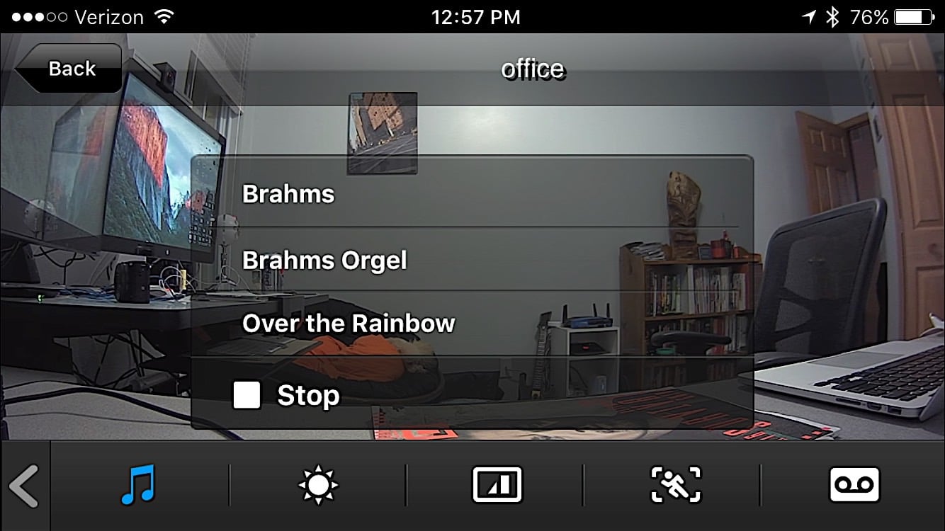 With the camera connected we could use it to see what our two dogs were up to, talk to them over the built-in speaker and for fun play them a song using the built-in lullaby function that is designed for use in a nursery.